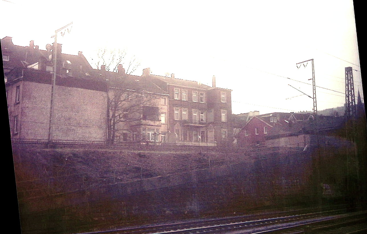 Eine völlig andere Perspektive ergibt sich, wenn man sich Wehringhausen von den Flußmündungen (Ennepe und Volme) her nähert. Ein Blick über die Akkumulatorenfabrik zum Goldberg im Sommer 1956 in einem erarbeiteten Panorama auf der Grundlage eines Films von Paul Kellermann (vgl. die Chronik meines City-Aufsatzes):