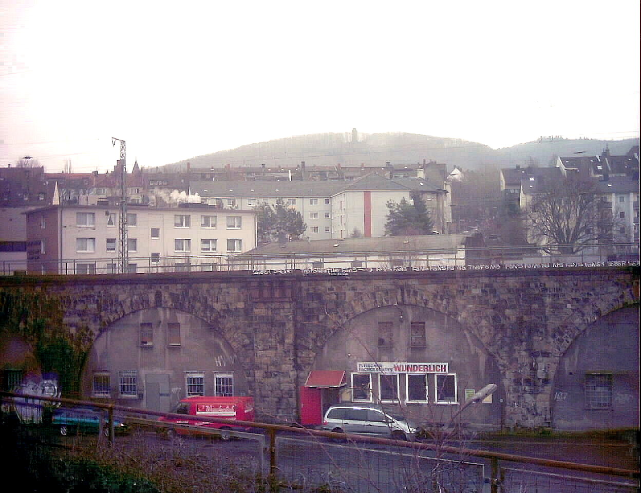 Die Lessing- bzw. Wilhelmstraße war - wie auf der Montage teilweise schon zu sehen ist - vor dem Zweiten Weltkrieg auch auf der Talseite des Buscheyhangs bebaut; die Häuser befanden sich - um heutige Begriffe zu gebrauchen - unter dem nahe der Konkordiastraße stehenden Parkhaus und - nach der Straßenverbreiterung im 1970er Jahrzehnt - unter dem Bergischen Ring selbst. Die Fußgängerunterführung (von der Grünstraße aus zur Konkordiastraße) entstand erst bei dem vierspurigen Ausbau der Ringstraße.