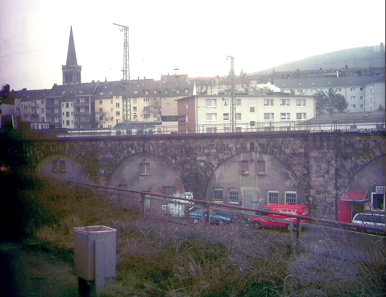 Auf unserem Wege wird nun die Bahnüberführung über die hier ebenerdig verlaufende Wehringhauser Straße (mit Blick auf die Einmündung der Rehstraße) erreicht: