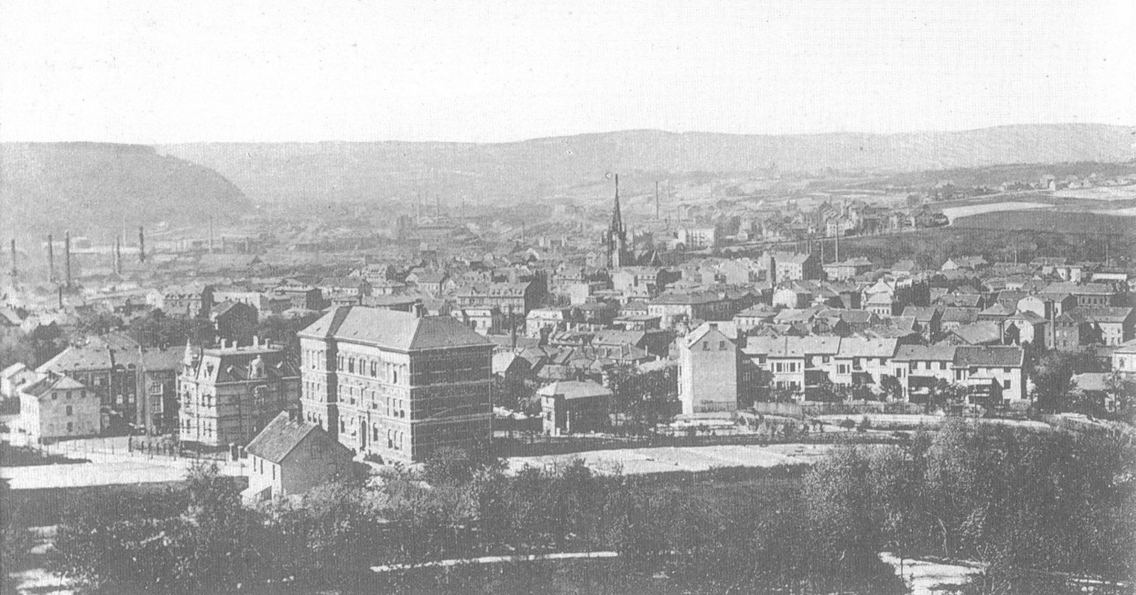 (Ausschnitt aus einer um 1935 gelaufenen Ansichtskarte mit Stadtpanorama vom Kratzkopf aus)