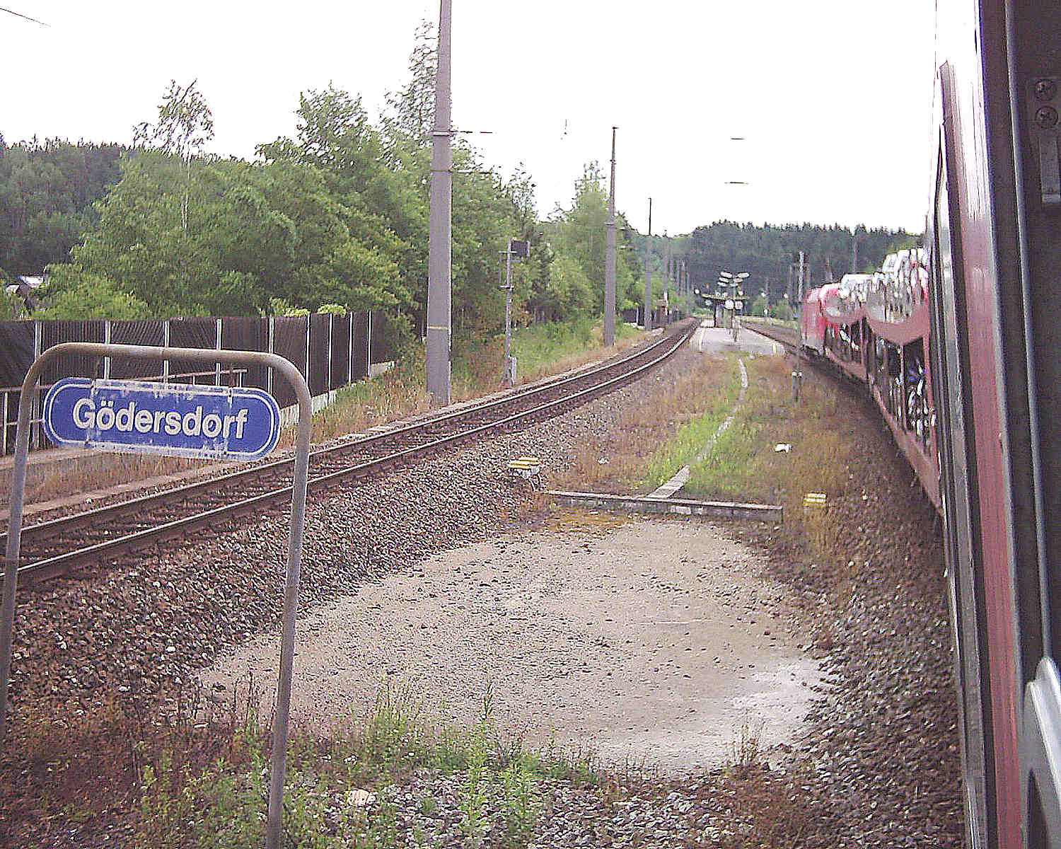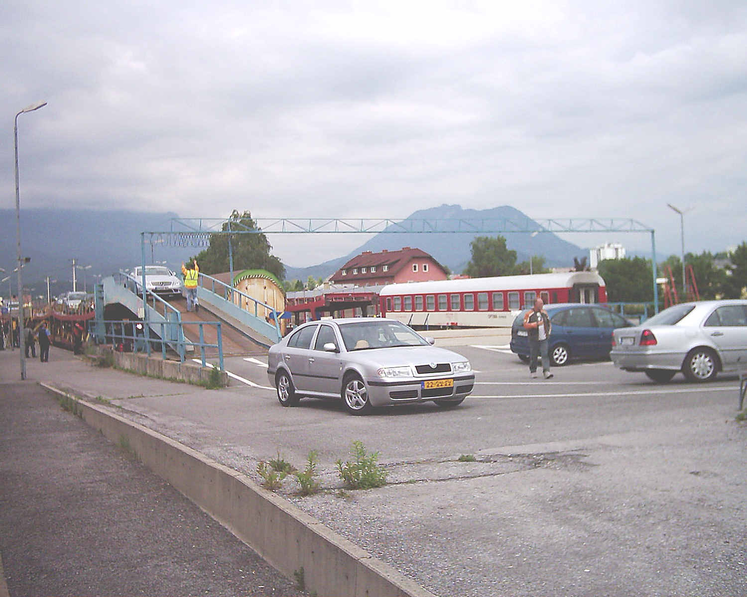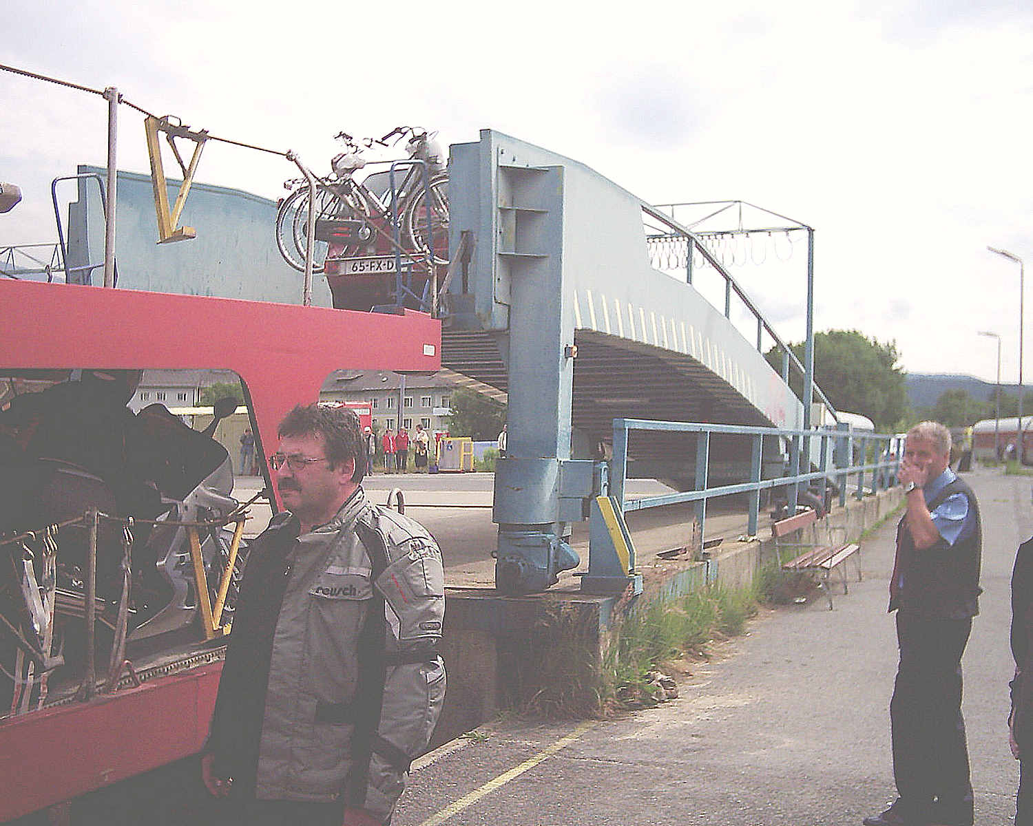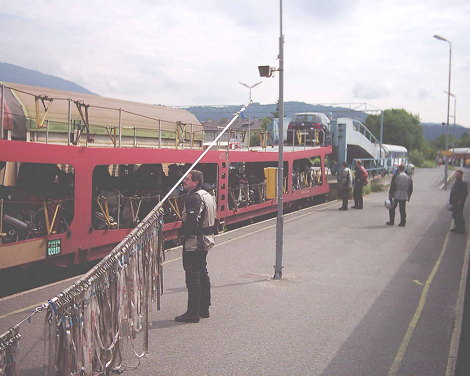 Sa., 2.6.07, 9:41ff. Bilder von Verladung (Motorräder/Autos) in Villach (östlich des Hbfs)
