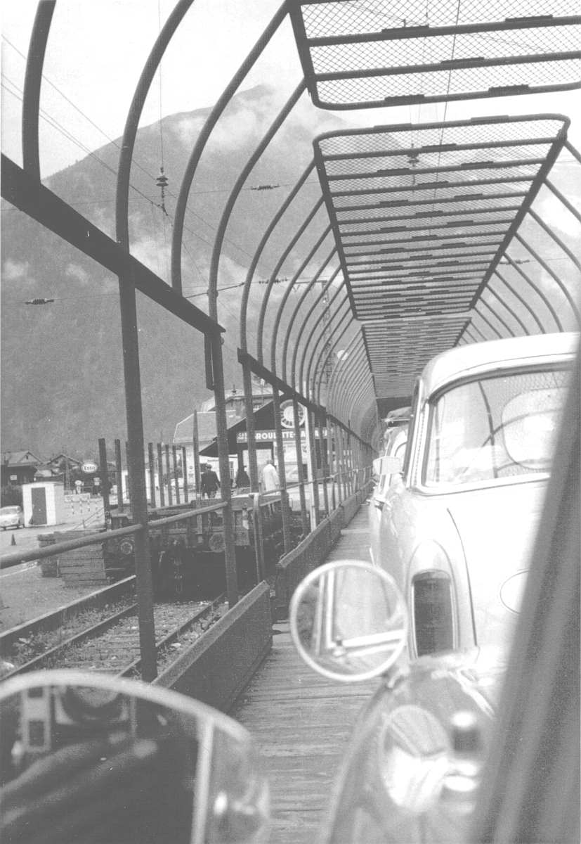 Foto auf der Autoreise eines Hageners um 1960 (vermutlich im Sommer 1962): beim Eisenbahntransport am Bahnhof Rosenbach vor dem Karawankentunnel (Dahlhaus-Sammlung)