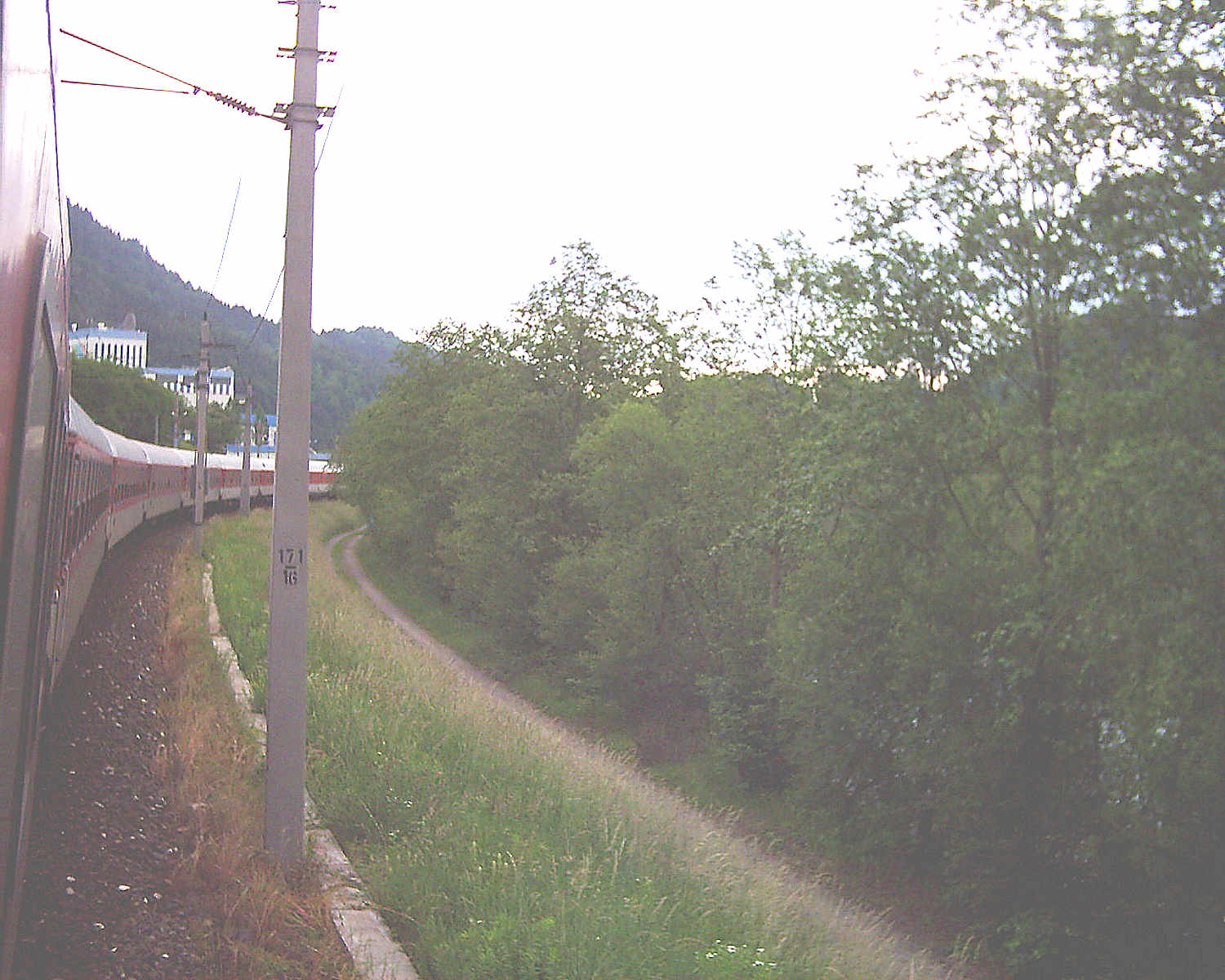 Kurz hinter Salzburg bin ich 6:53 Uhr aufgewacht; tief hängt der Nebel; man sieht kaum etwas. Es ist auch noch nicht ganz hell. [...] Glücklicherweise war ich sehr müde und schlief gleich ein; die Liege schien mir sogar bequemer als die Matratze im Schlafwagen [zu sein], welcher mir wegen seiner nicht zu öffnender Fenster wie ein Gefängnis vorkam. Jetzt ist es hell; wir fahren ruhig durch das Salzachtal, wo es sich aufklart. Wir fahren jetzt in Bischofshofen ein. 7:23"