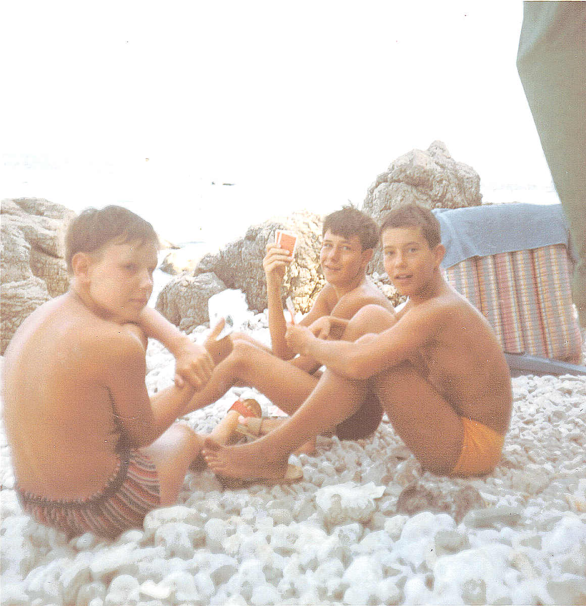 Die drei Brüder Klaus, Detlef und Christof beim Spielen am Strand