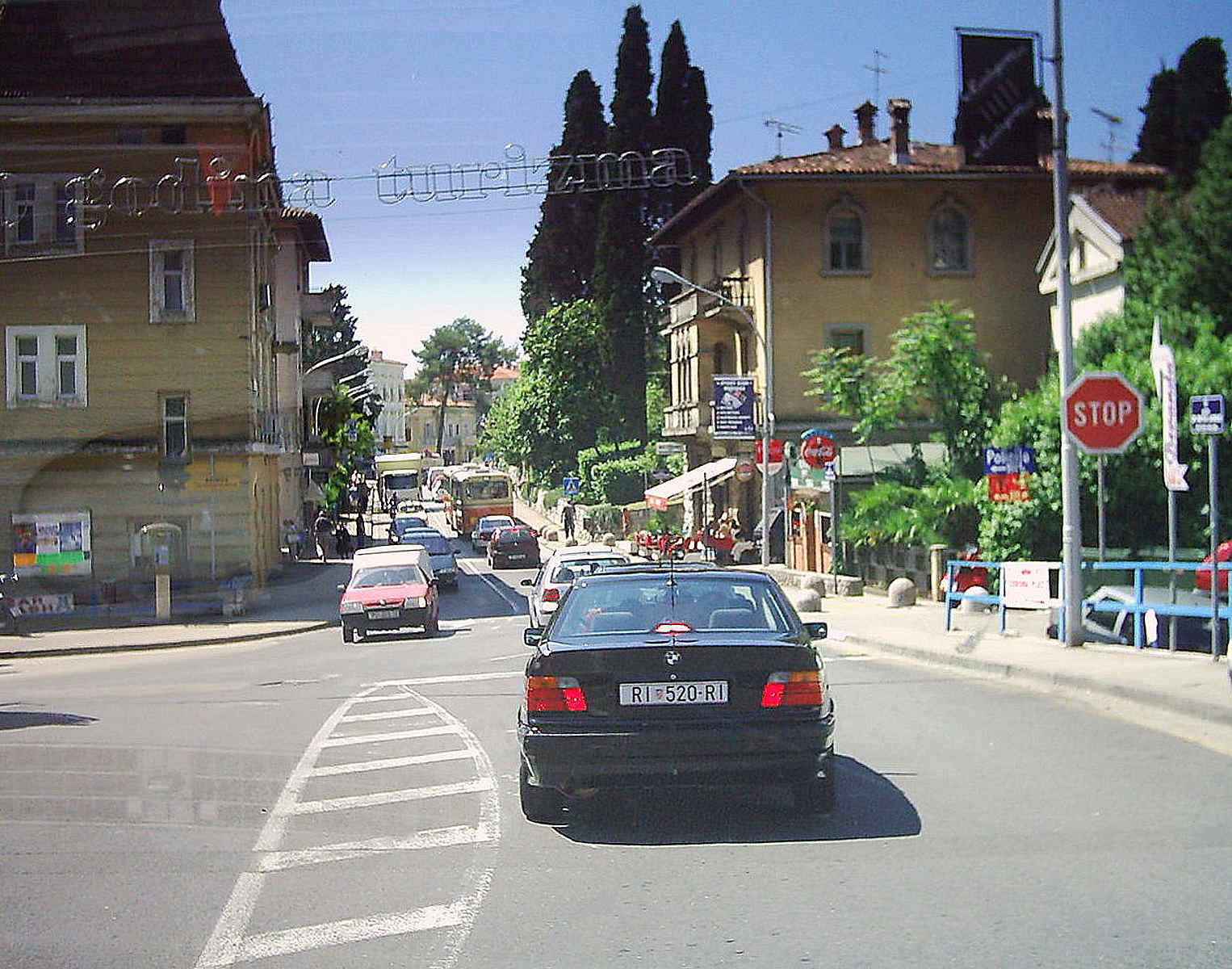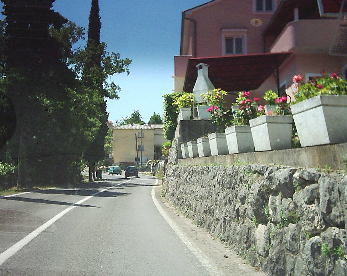 Die Route 66 (Jadranska Magistrale) folgt weitgehend einer antiken Küstenstraße, welche Rijeka (griech. Vitopolis, ital. Fiume, dt. Sankt Veit am Flaum) mit Pula (ital. Pola, slow. Pulj; dt. Polei) verband. Der genaue Verlauf der römischen Magistrale ist mir allerdings ebensowenig bekannt wie ihr Alter, so daß ich mich bei meinen Betrachtungen vor allem auf die heutigen Straßenverläufe im Gelände stütze. Die antike Küstenmagistrale wurde nämlich im Jahr 1843 erneuert und dadurch erst eine wichtige Voraussetzung für den aufkommenden Tourismus geschaffen. Freilich meinte Amir Muzur (in: ders., Dušan Peršić u. Silvano Raffaelli, Lovran, Lovran 2001, S. 15 f.), daß auch nach der Renovierung noch viel „von der guten Laune und der Geschicklichkeit etlicher Kutscher und ihrer Pferde" abhing (man könnte ergänzen: Autofahrer und -produzenten). Hierbei sollte zudem berücksichtigt werden, daß die Hauptverbindungen an der Küste natürlich seit der Antike auf dem Wasser lagen und die Küstenschiffahrt ihrerseits bei der Erschließung der Region für die Touristen wichtig war und auch noch ist. Dies gilt nur für Wasserschiffe, nicht aber für die an sich geeigneteren Luftschiffe, welche am Kvarner Golf freilich der Gefahr von Fallwinden (Bora, griech. Boreas) ausgesetzt wären.