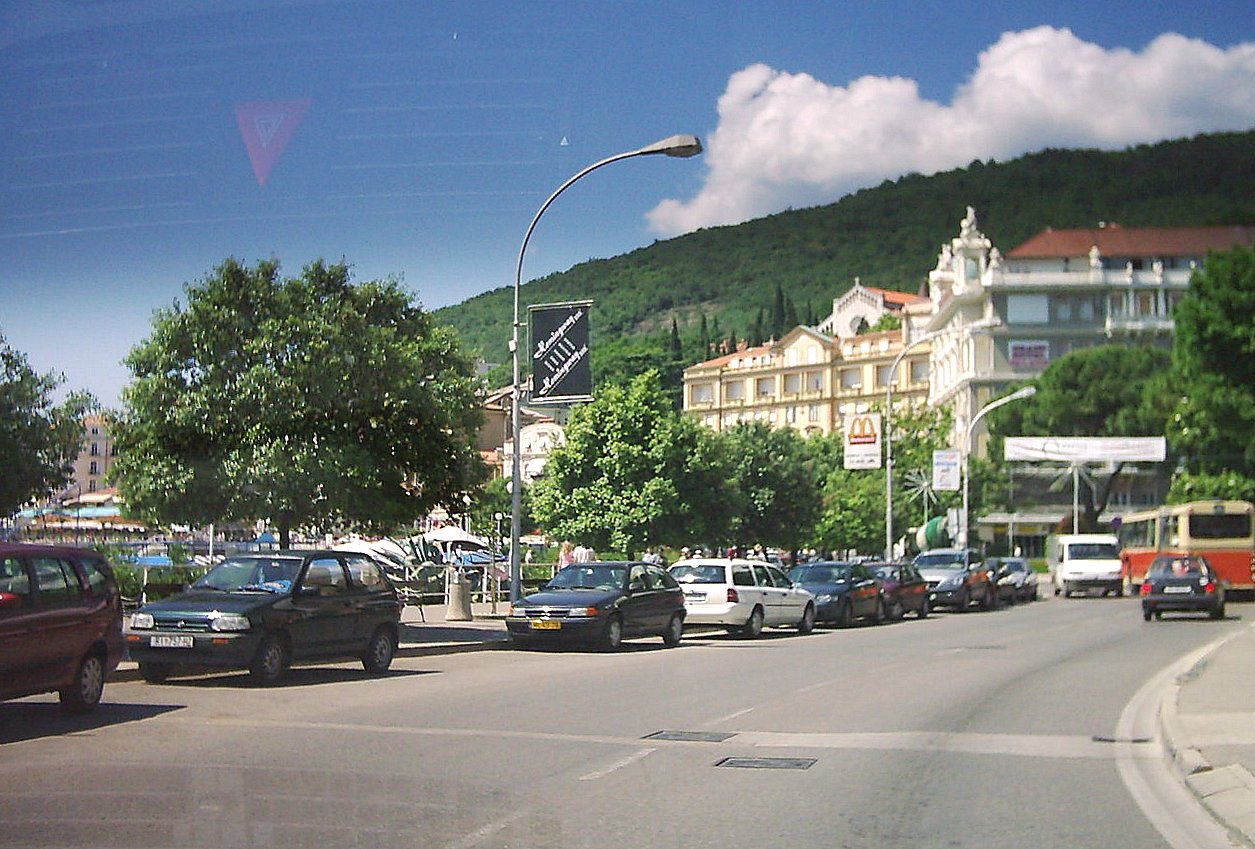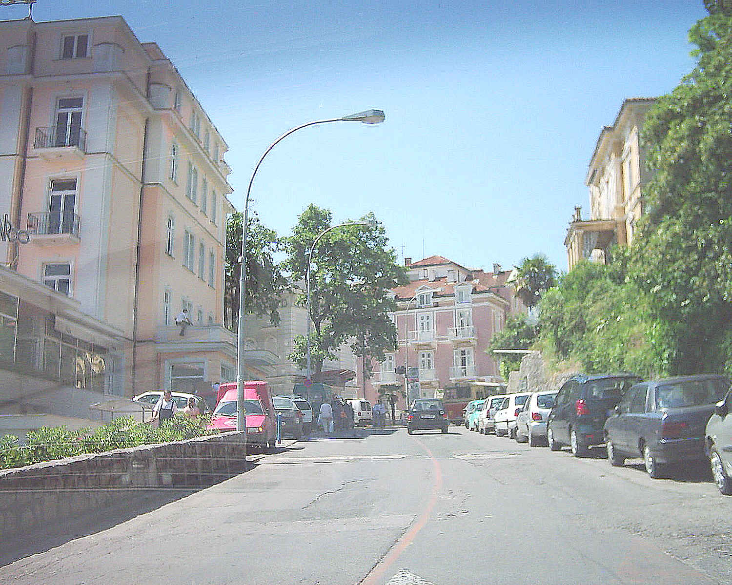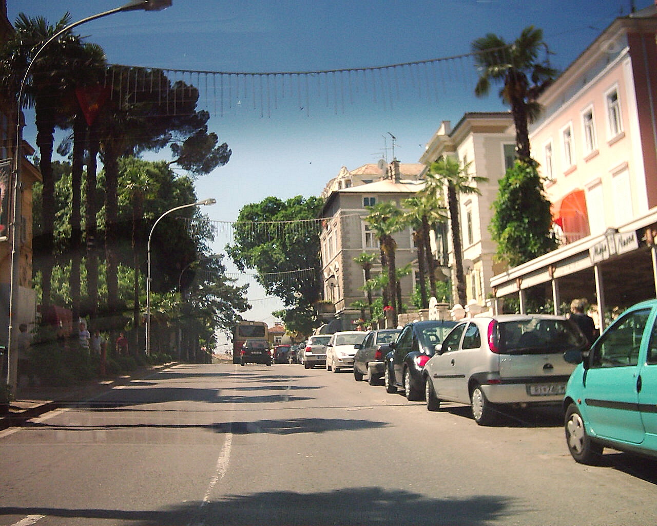 Bars und Hotels der Belle Époque an der Hauptstraße von Opatija (1813 - 1815 französisch, 1815 - 1919 österreichisch, 1919 - 1943 italienisch, 1943 - 1945 deutsch, 1945 - 1991 jugoslawisch, seit 1991 kroatisch...) in Richtung Slatina (02.06.2007 15:23 Uhr)