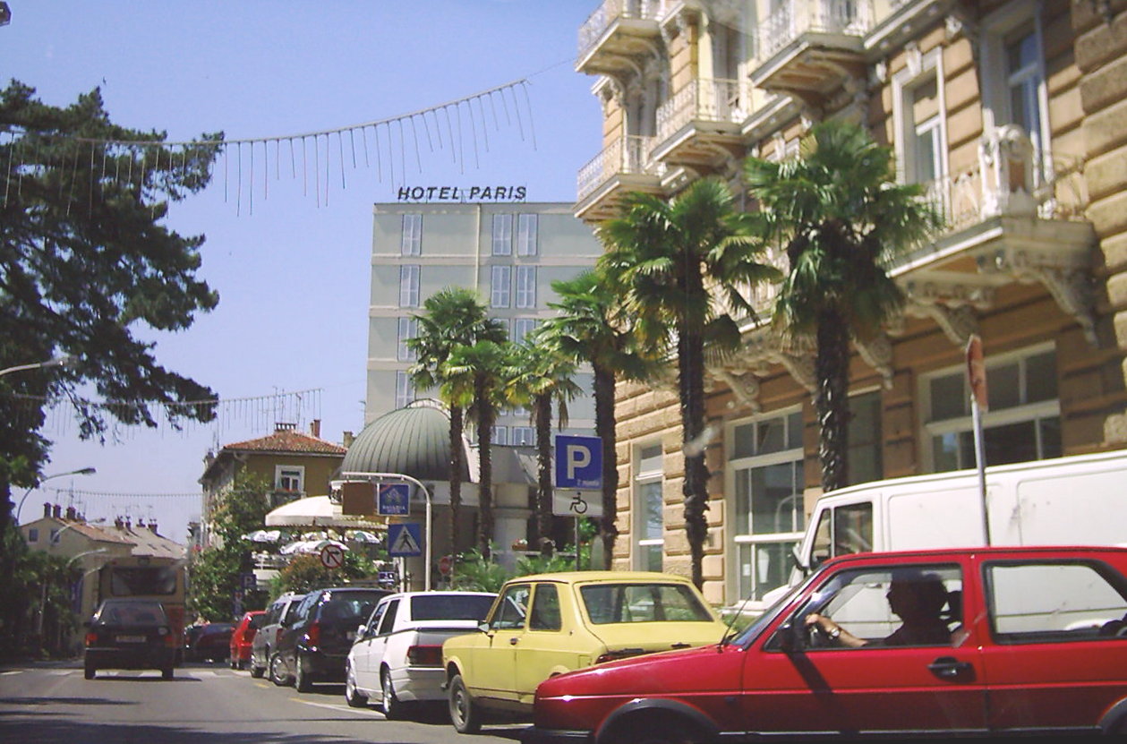 Zitat aus dem MARCO-POLO-Reiseführer von S. Sachau und V. Kogoj (5. Aufl. 2002, S. 88): Die noblen Hotelpaläste der Belle Époque, umgeben von gepflegten Parkanlagen, bestimmen noch heute zum großen Teil das Bild des Städtchens. Sein k. u. k. Flair erstickt allerdings zunehmend in den Abgasen der Autoflut, die sich rund ums Jahr über den schönsten Ferienort im Norden der kroatischen Adriaküste ergießt.