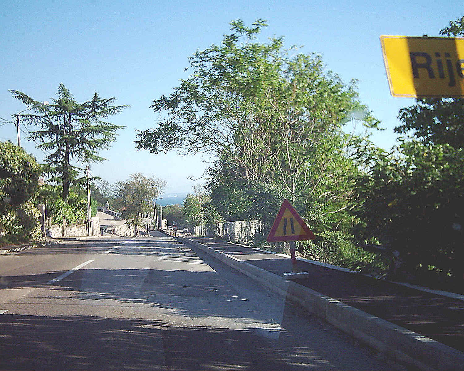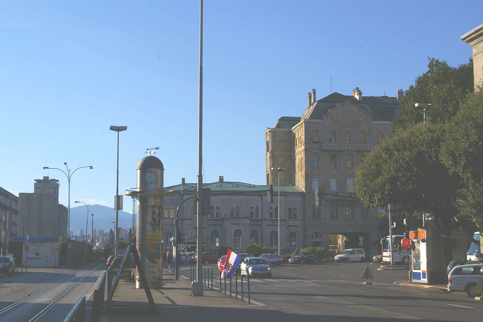In Rijeka, wo wir pünktlich um 8:51 [Uhr] ankamen, wurden wir am Bahnsteig von unserem Taxifahrer erwartet; in zügiger Fahrt - mit einigen Filmchen [09:04 nach Verlassen des Bahnhofs hinter der Ulica Nikole Cara (15 MB) - hier als YouTube-Video: