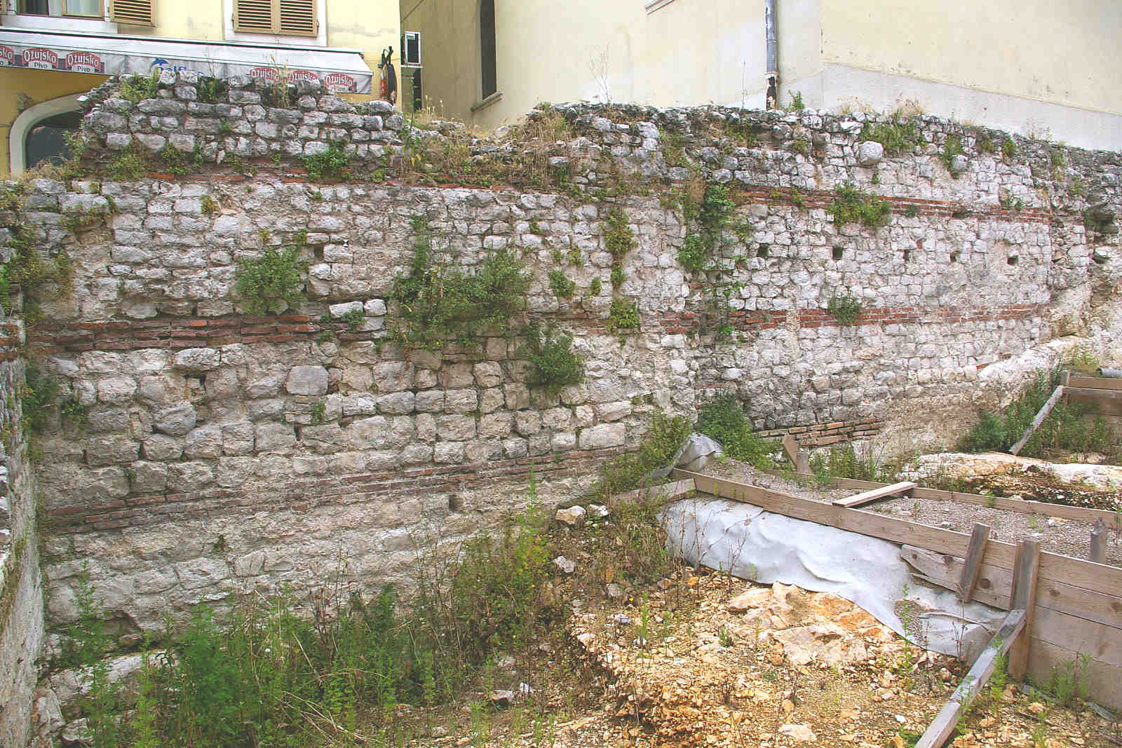 [von] der Kappuzinerkirche in Richtung Ausgrabungsstätte am römischen Stadttor [Korrektur vom 8. Juli 2009: in den Reiseführern ist von einem Tor zum römischen Praetorium die Rede] aufgemacht; zwischendurch reichlich Stereo- und Panorama-Fotos [geschossen]. Das Museum [eigentlich: sowohl das Stadt- als auch das Seefahrts- und Geschichtsmuseum des kroatischen Küstenlandes (dieses befindet sich im ehemligen Gouverneurspalast)] ließ ich links liegen.