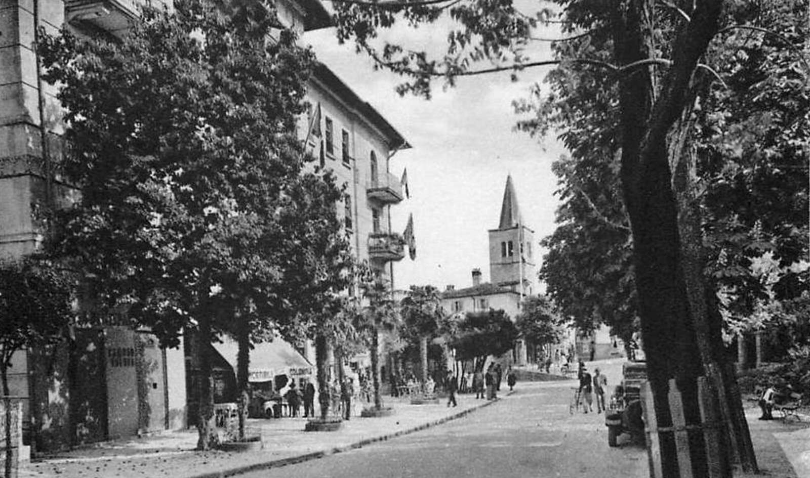 Sie wollen noch weiter zurück? Na gut, dann aber ohne Hotel Park rechts - dafür mit Carno Café Adria links: (colorierte Ansichtskarte von etwa um 1910)