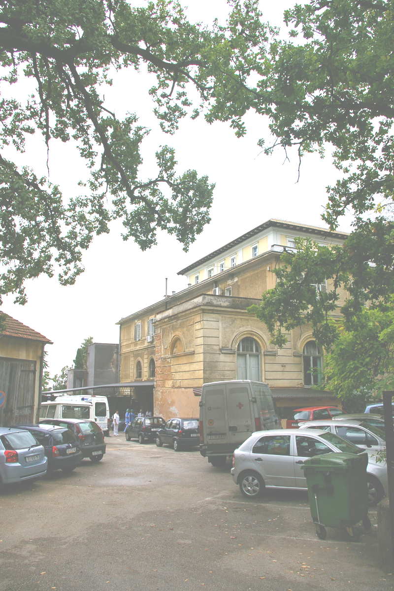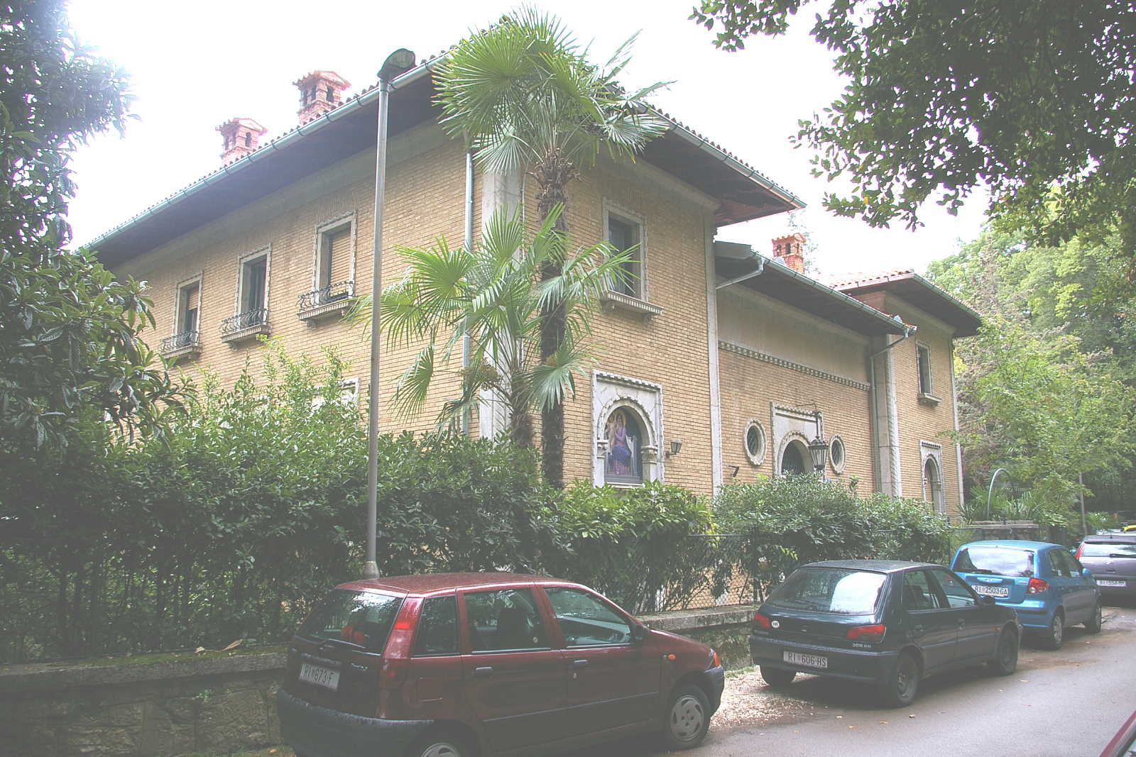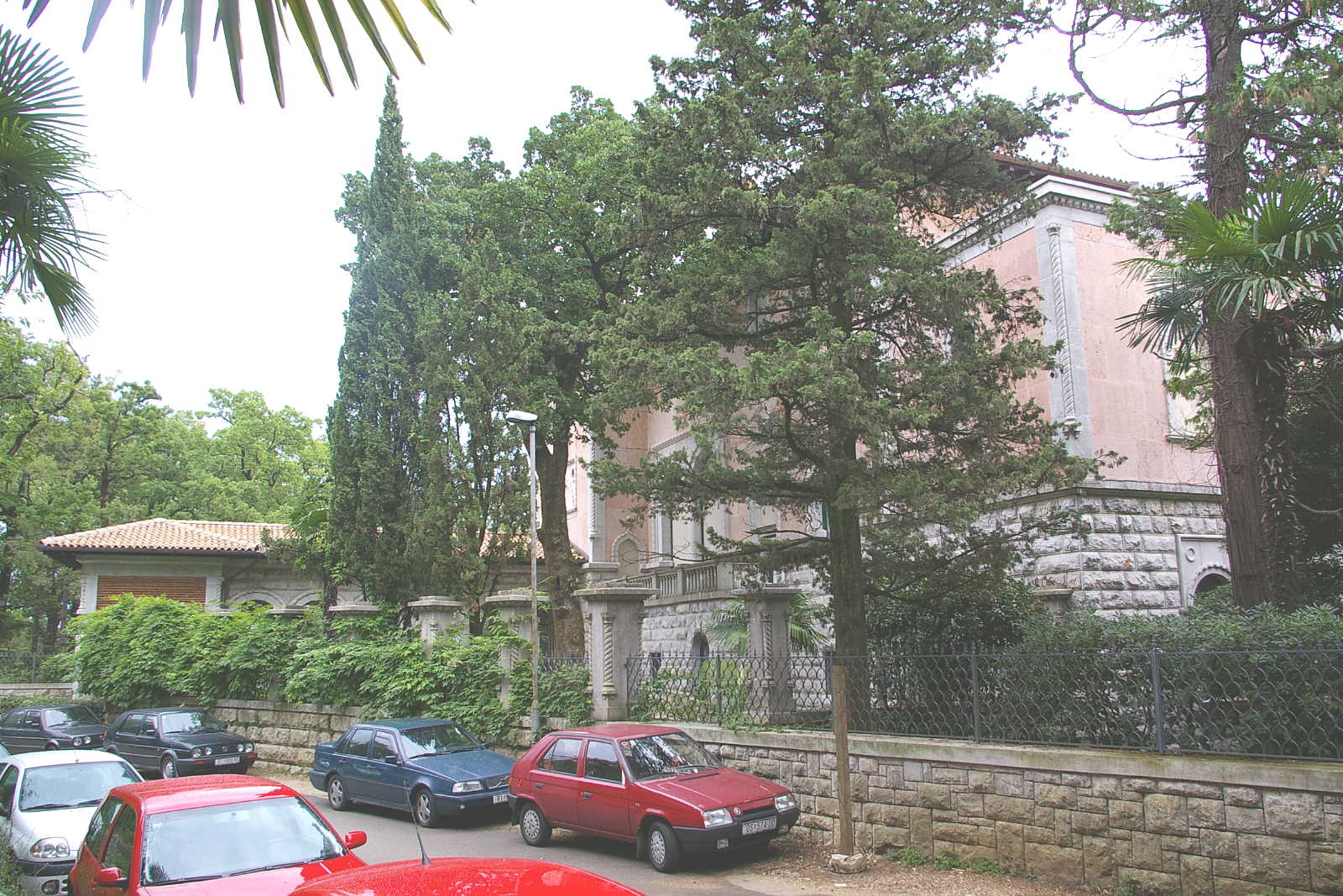 12:19 Uhr: Blick von der Badeanstalt bei der Klinik am ,Nordstrand' auf die Bucht von Rijeka 13:05 Uhr: Eingangsbereich der Orthopädischen Klinik von der Hauptstraße aus 13:07 Uhr: Altbauten an der Hauptstraße gegenüber der Klinik