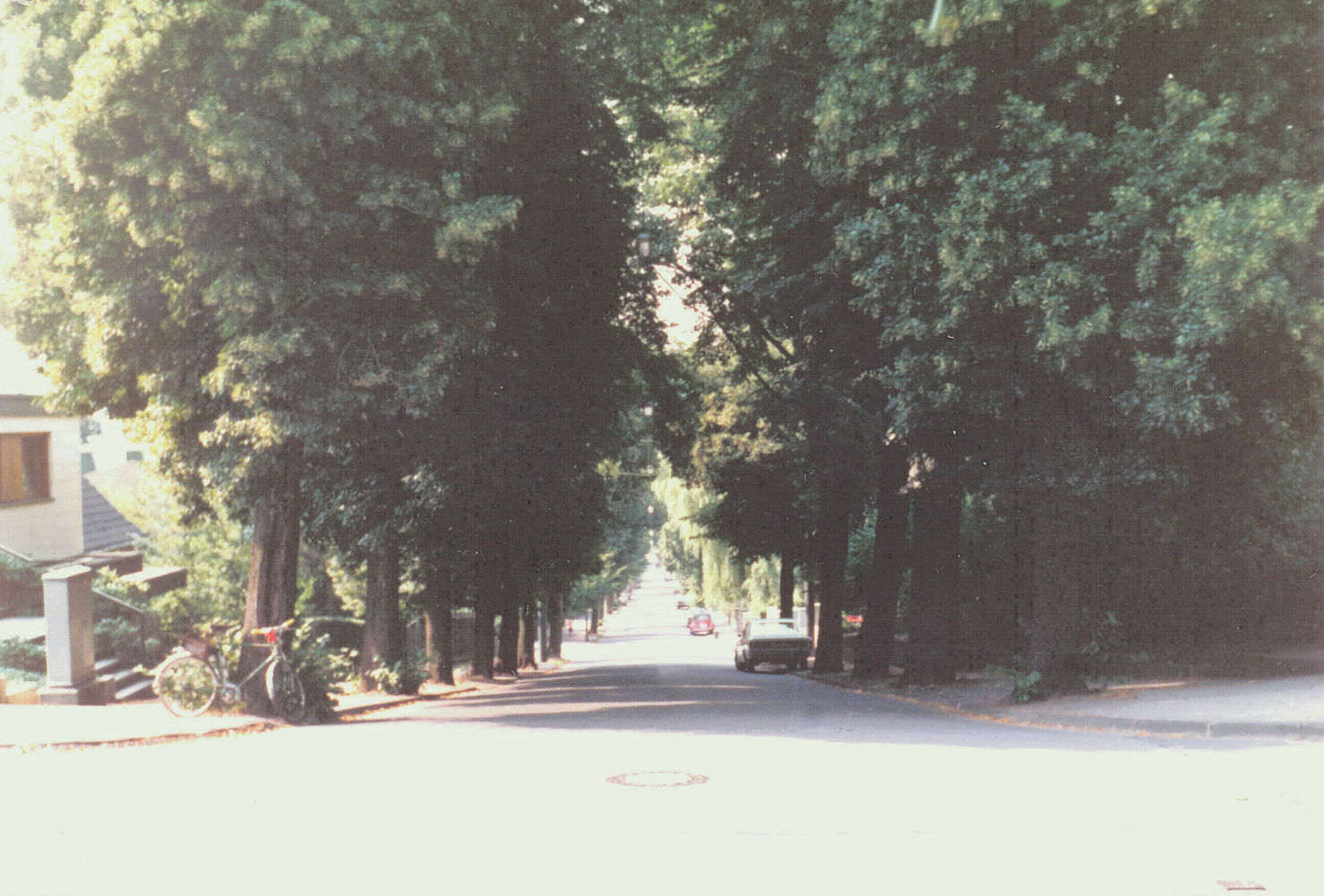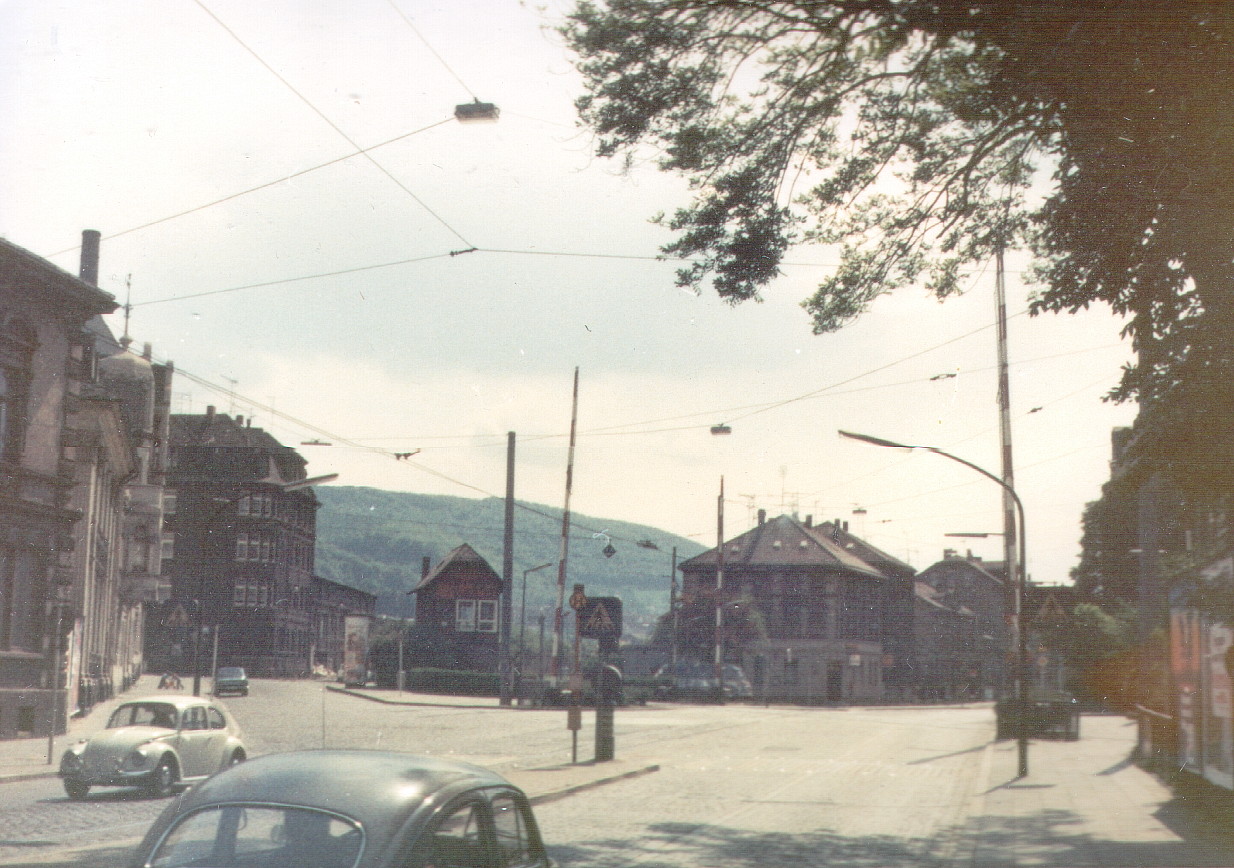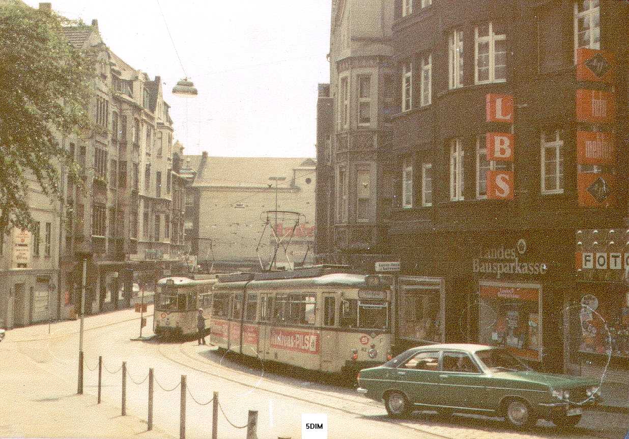(Aufnahme der Christian-Rohlfs-Straße von der Stadtgartenallee aus mit dem erwähnten Fahrzeug links bei der Zustellung - Foto: Detlef Rothe, 7. August 1975)