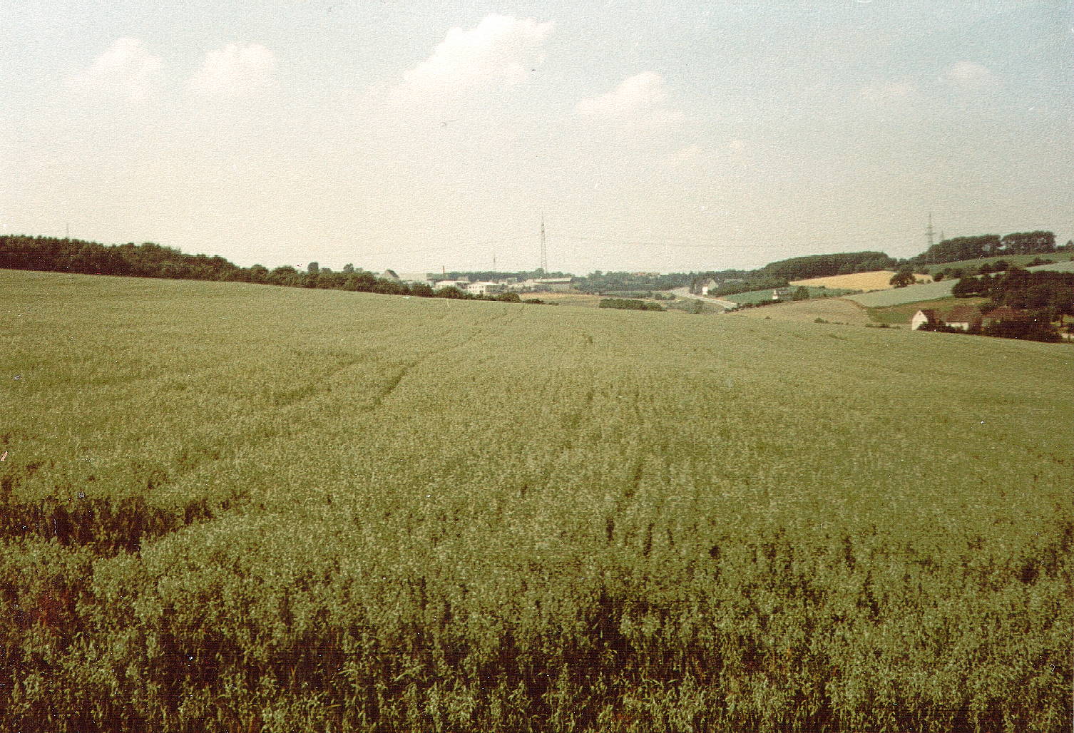 Von Schmandbruch aus bin ich zunächst ein Stück Richtung Vogelsang gefahren, habe mir die Felder notiert, dann bin ich zurück nach Schmandbruch und über Nielande [Gewerbegebiet an der heutigen Autobahnauffahrt Hagen-Haspe] zur Hombergerhöhe, wo ich viele Fotos gemacht habe. Ich mußte aber später feststellen, daß durch die Perspektive der Fotos der Kaisberg so klein geraten war, daß man keine Einzelheiten mehr erkennen kann.