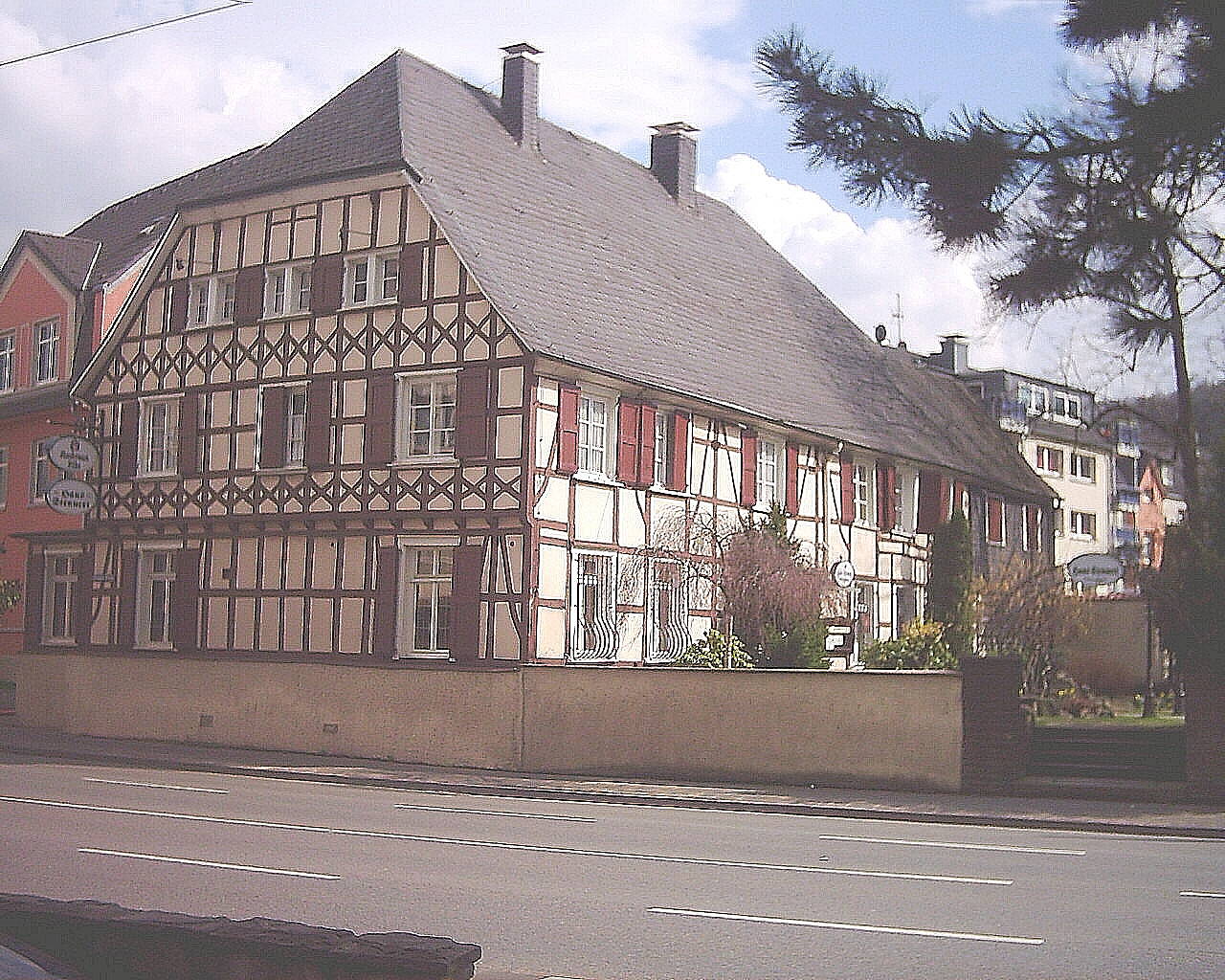 Gegen 14.30 Uhr machte ich vor einer nicht mehr existierenden Aral-Tankstelle Pause und bannte die links davon befindliche Fachwerkhaus-Gruppe (rechts Haus Nr. 89) auf den Film: